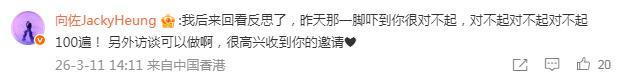 搜狐娱乐讯 3月11日,向佐发文向主持人百克力道歉,称自己是吓到主持人非常抱歉,并称之后可以接受访谈。