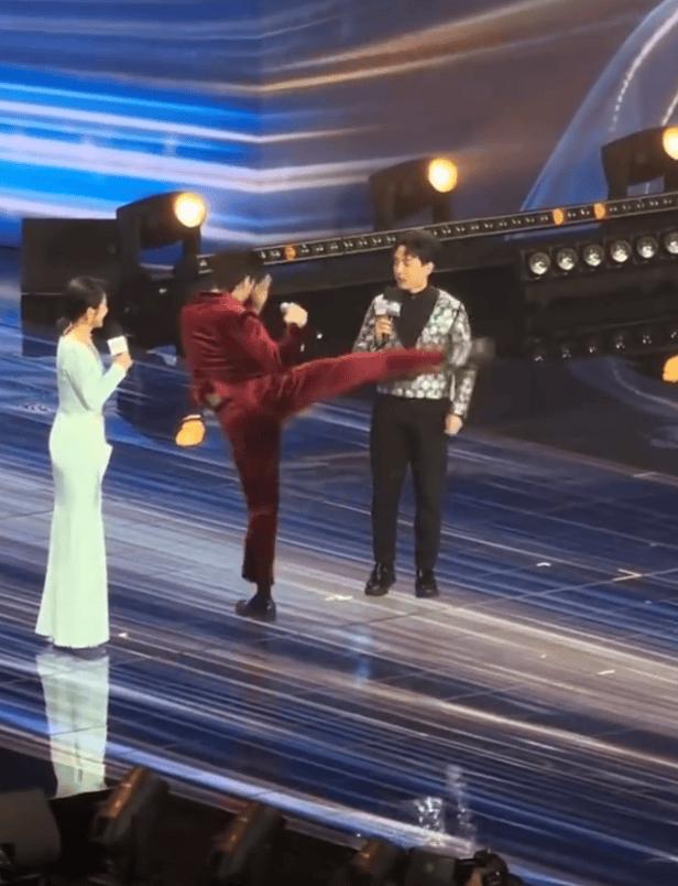 3月10日配资融券网,向佐现身某盛典晚宴, 他在台上展示功夫,主持人夸他“穿丝绒西装把拳打得这么好”,他突然展现了一个“踢”的动作,差点踢到主持人的头。