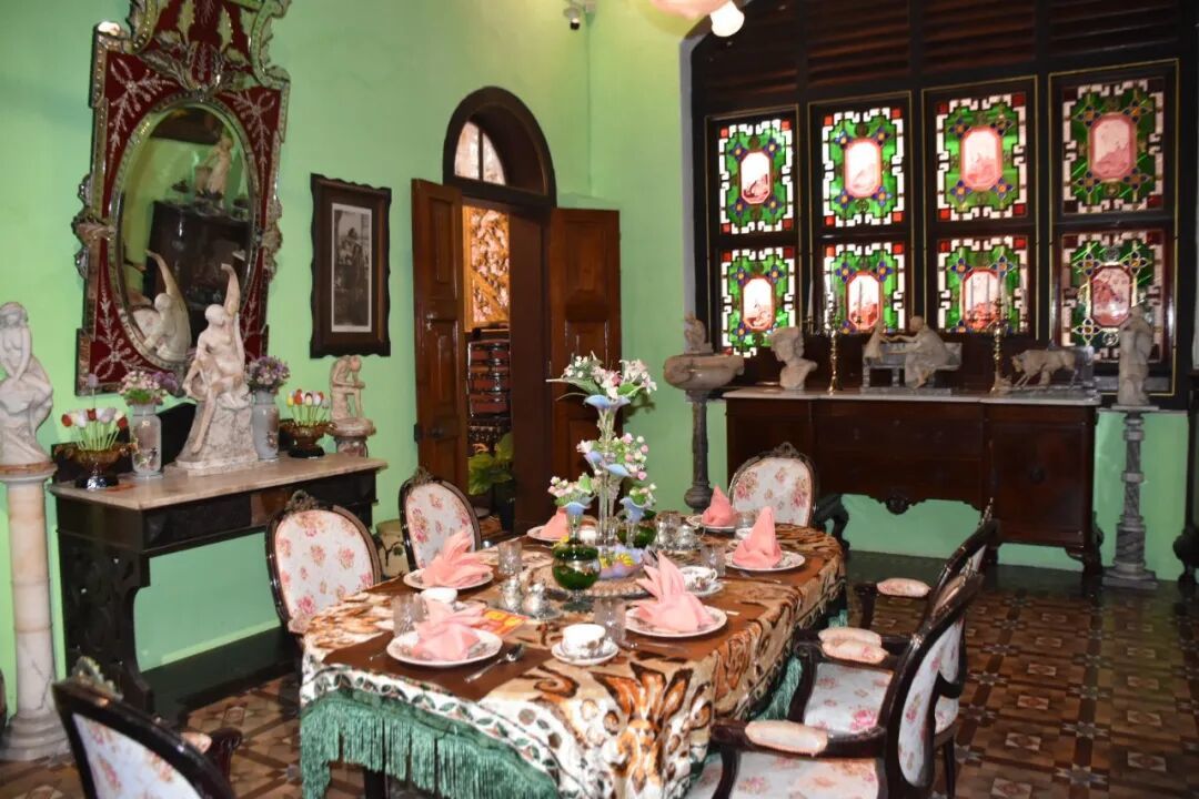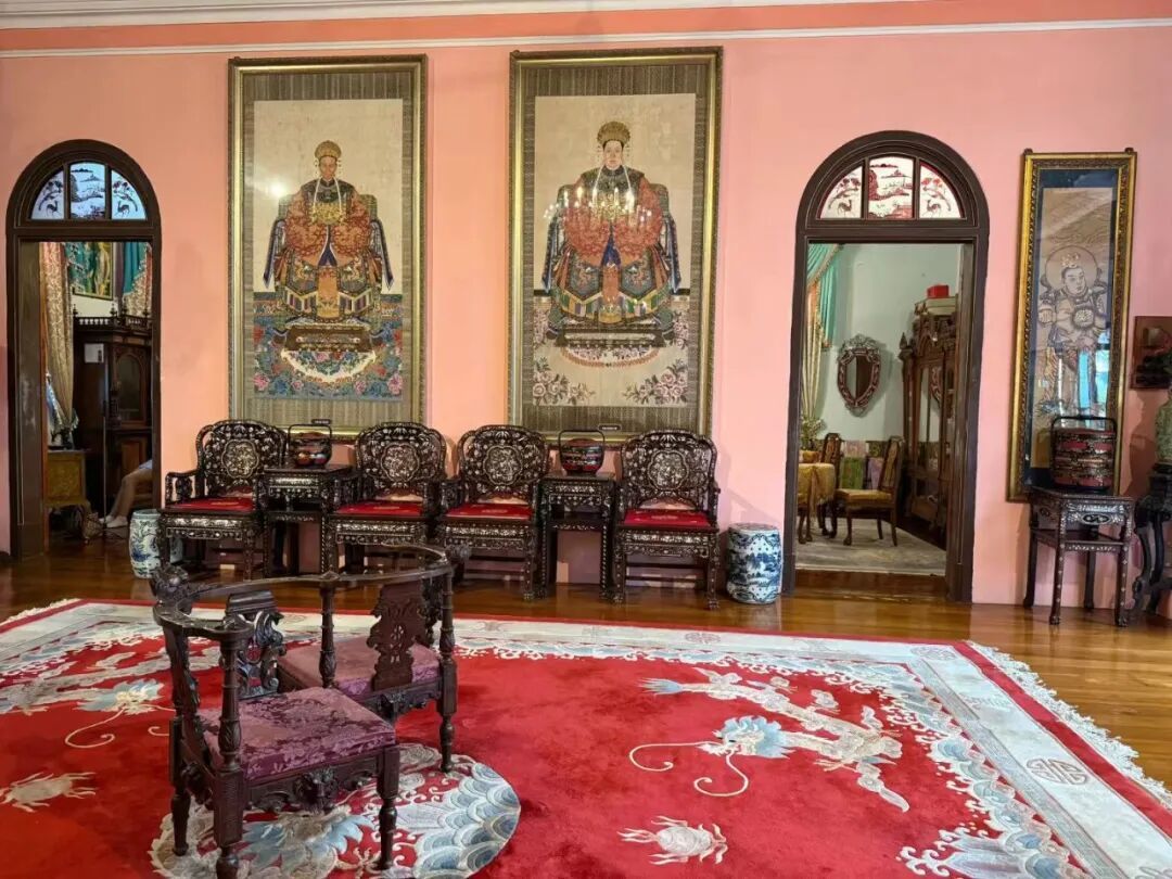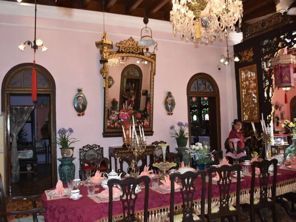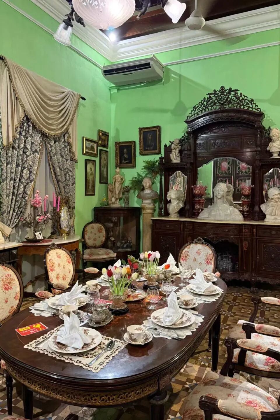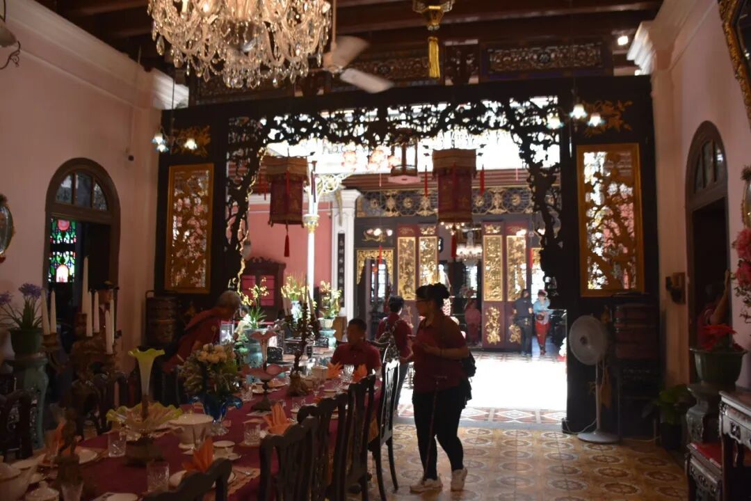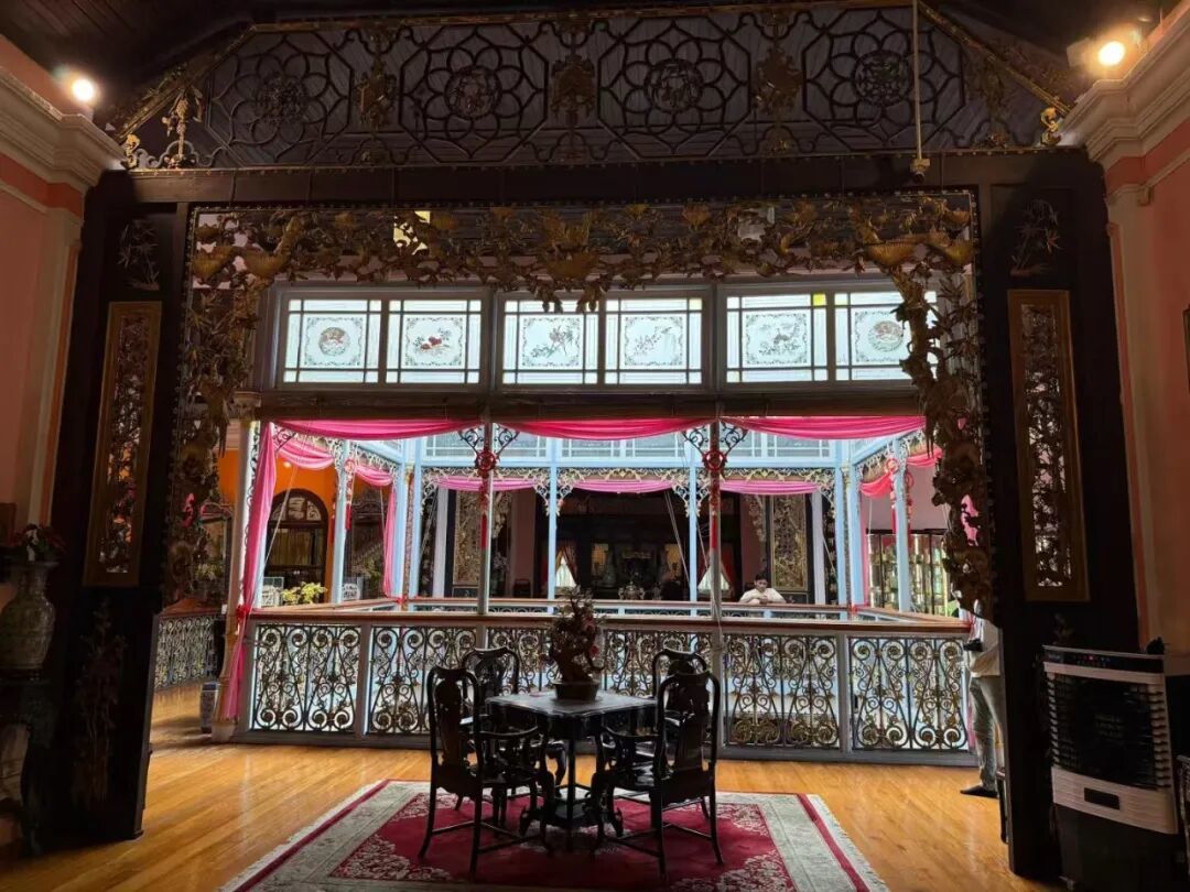 此座宅邸最引人注目的就是它鲜艳的薄荷绿色外墙,因此也被称为“绿屋”。在建筑方面,以其精致华丽的住宅而闻名,房屋融合了中国和马来的建筑风格,以其复杂的木雕、色彩斑斓的瓦片屋顶和美丽的花园为特色。