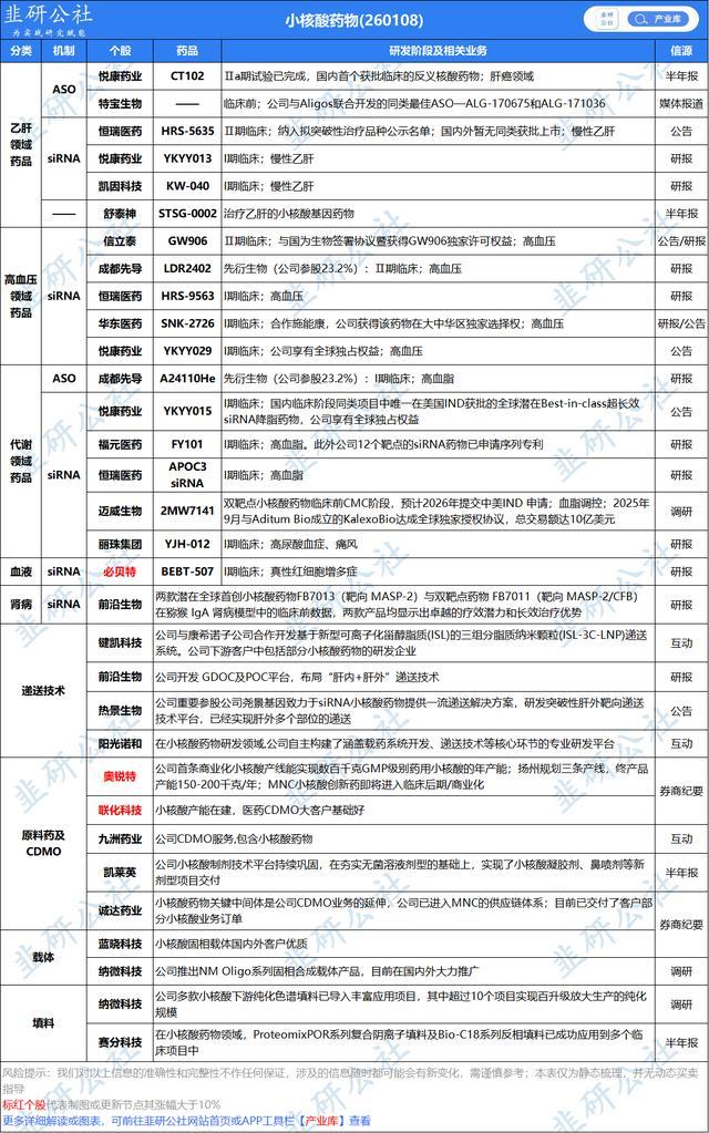 1、2026年3月27日配资开户服务,数据显示,截至2026年3月21日,2026年中国创新药出海BD总包已经达571亿美元,首付33亿美 元,数量达53件。总包相当于2025年全年的41%,已超过2024年全年水平。 2、2026年1月9日瑞博生物(小核酸标的) 将于在港交所登录上市,最新报74.5港元,较招股价高28.52%;后续舶望制药、靖因药业、大睿生物、圣因生物等皆有望 26年港股上市。 3、2026年1月7日GSK公告,基于2项关键3期临床(B-Well 1 和 B-Well 2),Bepirovirsen(HBV-ASO) 实现乙肝 CHB 的功能性治愈,联用效果优于单药。 4、2026年1月6日晚,海外小核酸龙头arrowhead发布两条减脂管线 (靶向INHBE(ActivinE)的ARO-INHBE、靶向ALK7(ACVR1C)的ARO-ALK7)积极临床数据,视作继近日wave作为首 家发布靶向INHBE(ActivinE)的小核酸药物WVE-007减脂数据以来,小核酸药物在富有前景的减脂领域的再度验证。