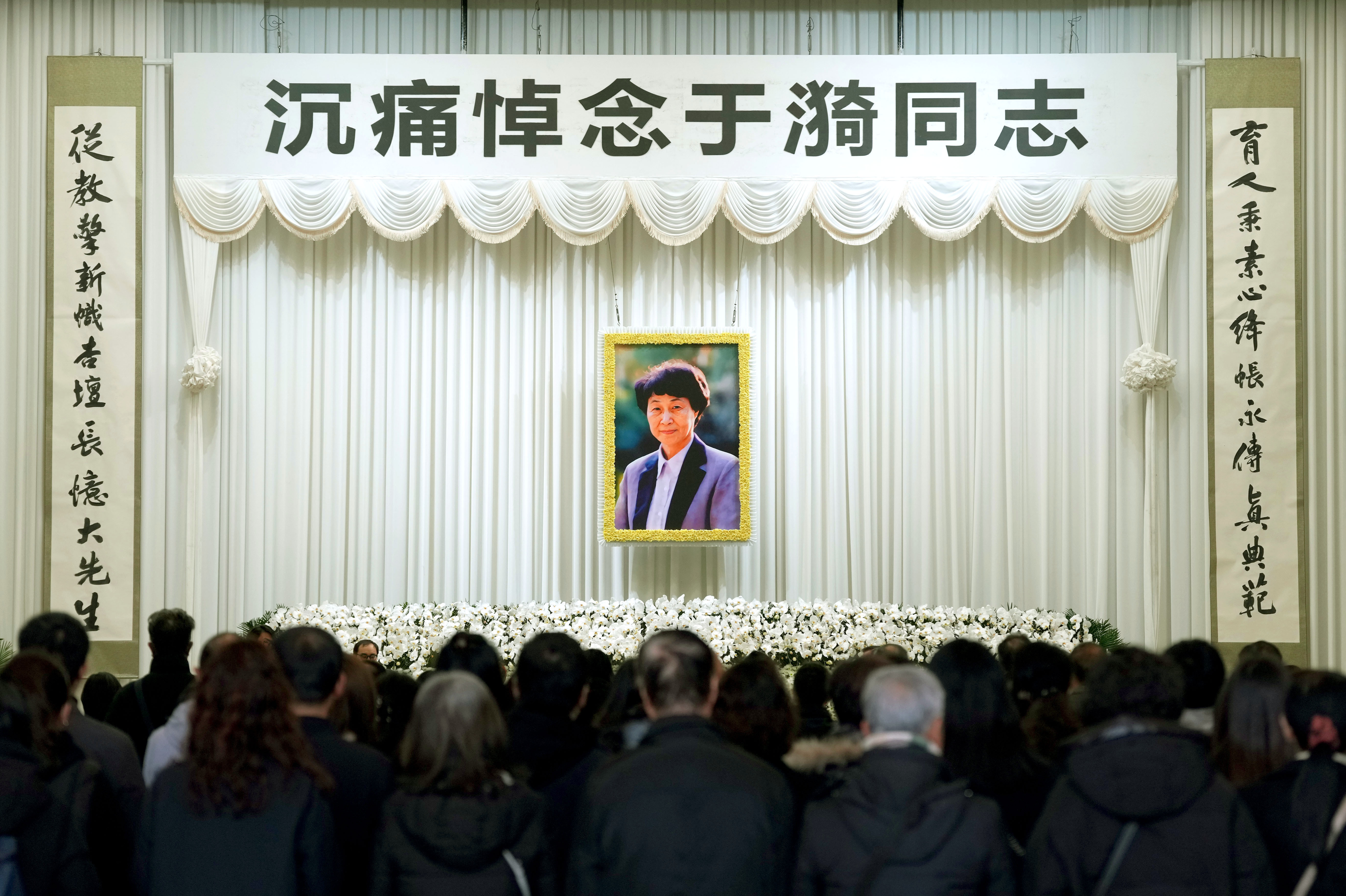 3月18日,各界人士前来参加于漪老师遗体告别仪式。