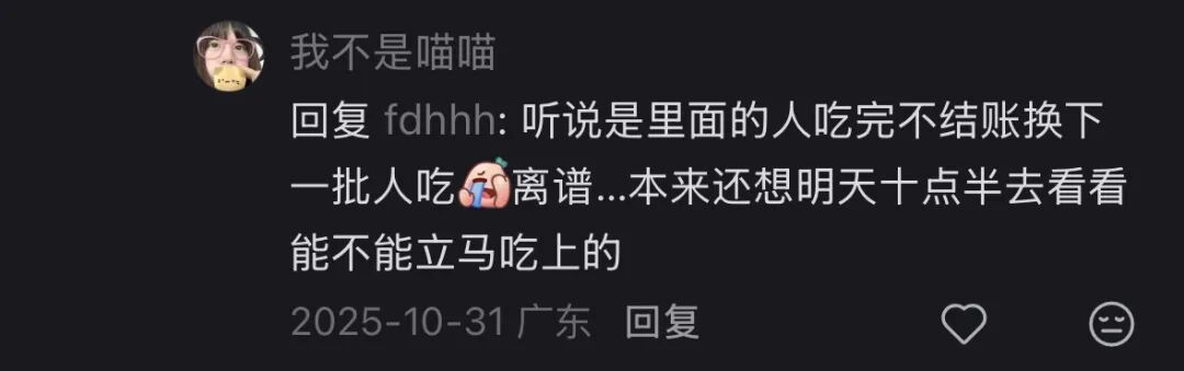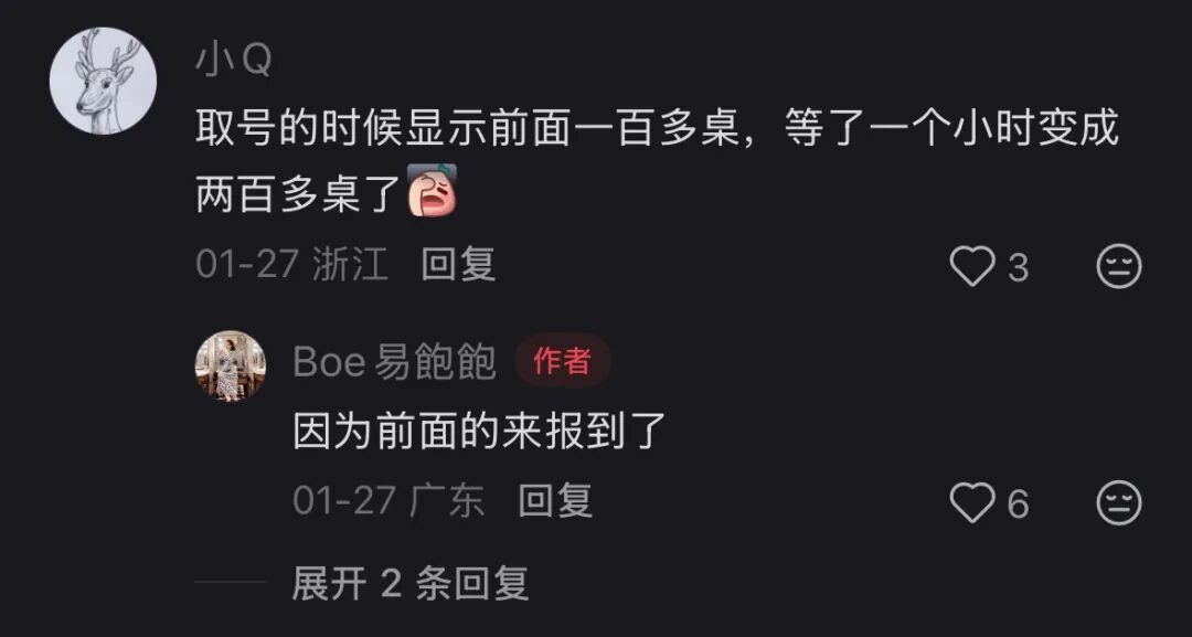 除了雇老人代排,黄牛还开发出一套别出心裁的座位“世袭制”:一个顾客吃完之后不结账,由黄牛安排另一个人进去接着吃,店员问起就说“找朋友/家人/我妈/儿子/大姨/二表舅”。一张小桌子愣是吃成流水席。
