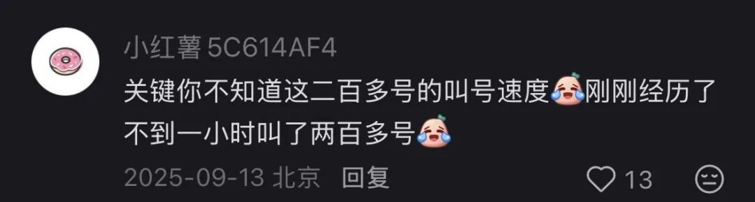 在你等待的时候,拿着 900 至 1000 号之间的人如果到达现场签到,他们就会不断地插在你前面,导致你的号码越等越靠后,很考验心态。