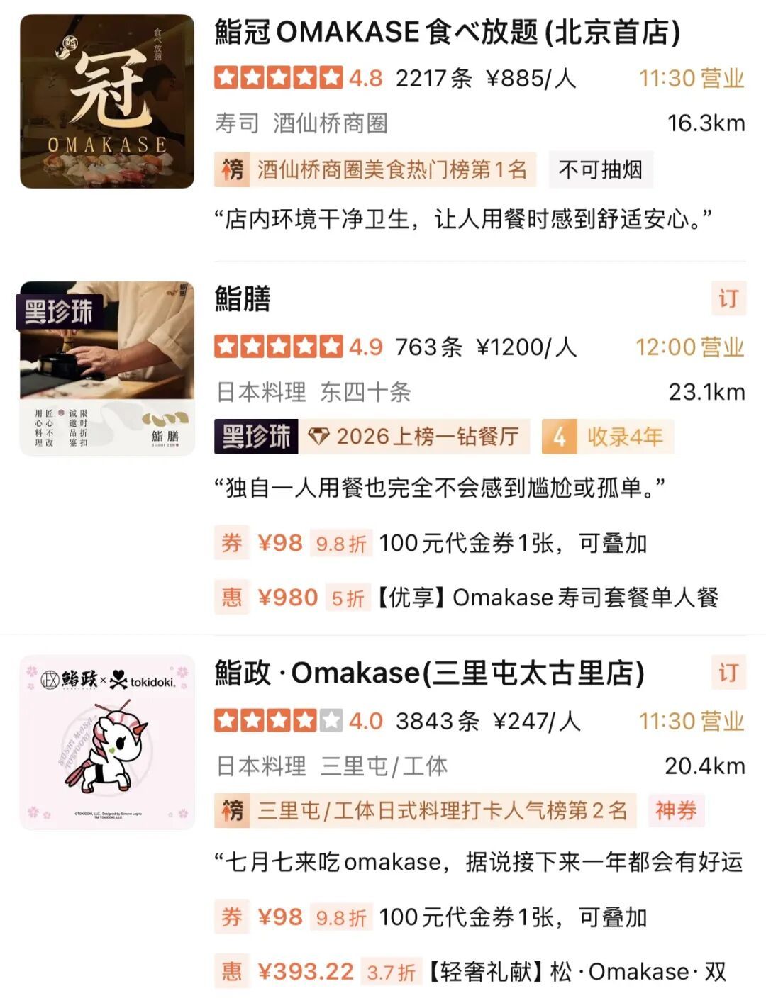 在这些匠人 IP 和小众名词的加持下,早些年日料在中国是自带高级光环的。那时候的寿司店,最喜欢在招牌上用一个大家读不太懂的生僻字——“鮨”。