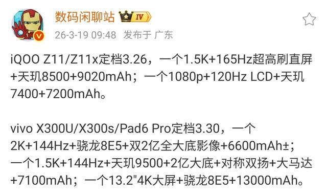 按照目前的预热和爆料信息,vivo X300 Ultra、X300s 和 Pad6 Pro 三款新品将于 3 月 30 日发布,4 月 3 日上市。