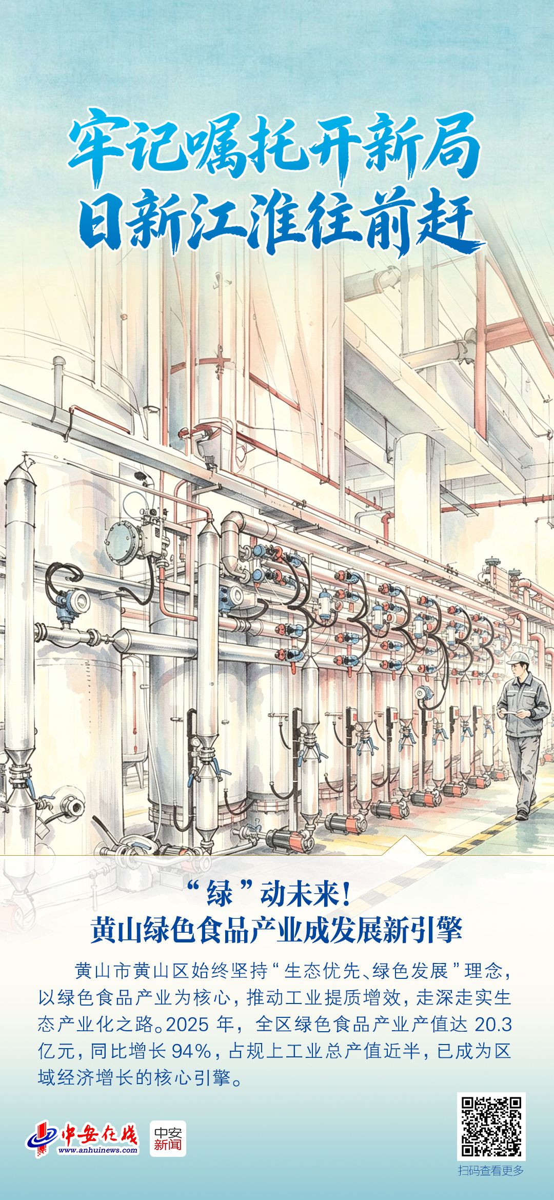 放眼全市,黄山市聚焦绿色食品特色产业,强化顶层设计与系统布局,先后出台《黄山市“十四五”茶产业发展规划》《黄山市“十五五”时期特色农业产业“1+20*6”全产业链高质量发展实施意见》等系列文件,为产业创新升级提供了坚实的制度保障。2025年,全市规上农产品加工业产值增速达3.5%,高于全省平均水平3.1个百分点,位居全省第5;全市绿色食品十大产业综合产值达760.6亿元,同比增长13.9%,交出了一份亮眼的成绩单。